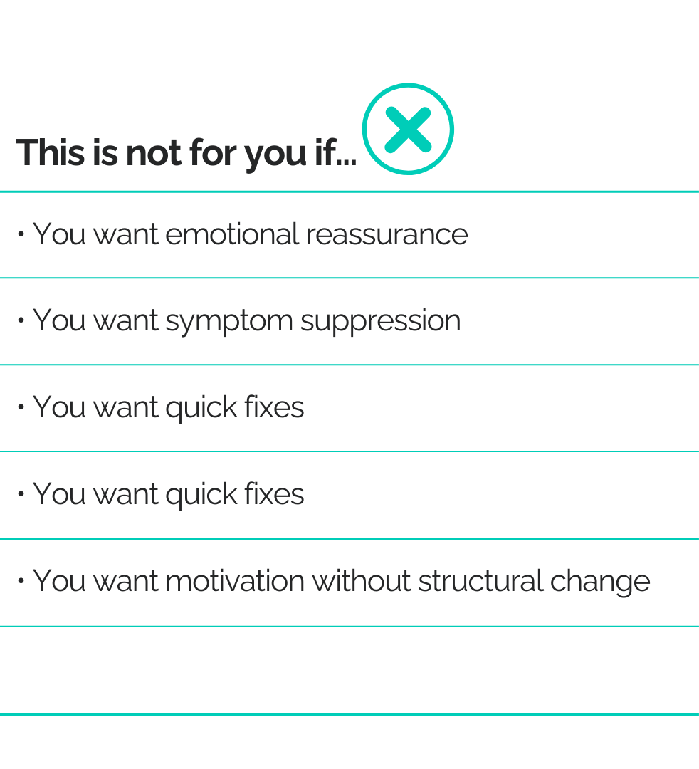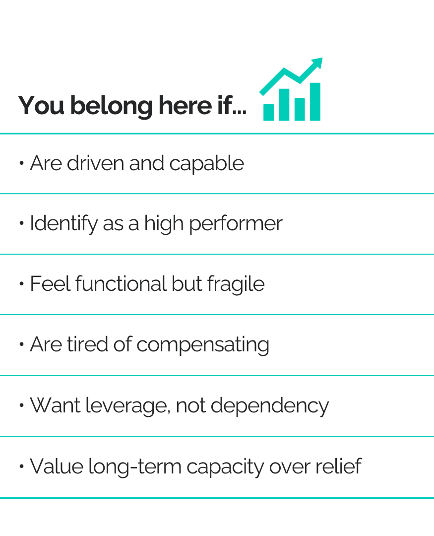 It removes survival-mode patterns so your system no longer needs to stay braced, hyper-vigilant, or over-controlled just to function.